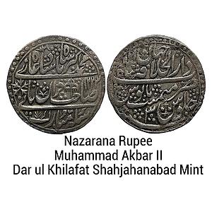 Mughal Muhammad Akbar II Dar ul Khilafat Shahjahanabad Mint Silver Nazarana Rupee