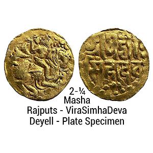 Hindu Medieval Rajputs of Central India Virasimhadeva Gold 2-1/4 Mashas exceedingly rare