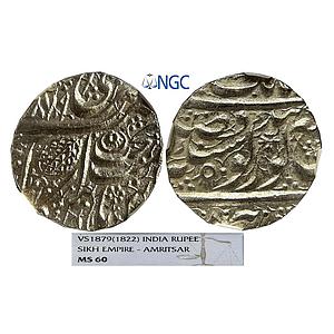 IK Sikh Empire Ranjit Singh VS 1879 Amritsar Mint Nanakshahi Couplet Silver Rupee