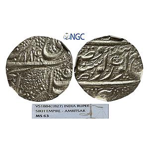 IK Sikh Empire Ranjit Singh VS 1884 Amritsar Mint Nanakshahi Couplet Silver Rupee