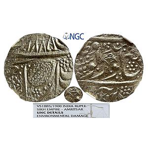 IK Sikh Empire Sher Singh VS 1885 Amritsar Mint Nanakshahi Couplet Silver Rupee