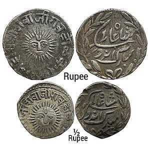 IPS Indore State Tukoji Rao III INO Shah Alam II Set of 2 Coins Silver Rupee & 1/2 Rupee