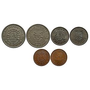 Indo Portuguese Goa Colonial Issue Set of 6 Coins Cupro-Nickel 6 Escudos 3 Escudos Escudo and 60 Centavos Bronze 10 Centavos