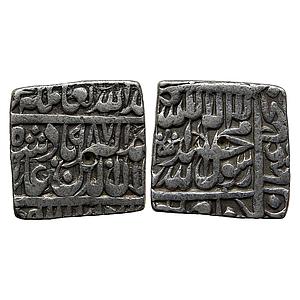 Mughal Akbar Urdu Zafar Qarin Mint Silver Square Rupee