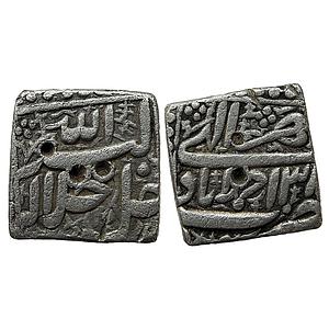 Mughal Akbar Mintless & Monthless Type Jalla Jalalahu Silver Square 1/2 Rupee