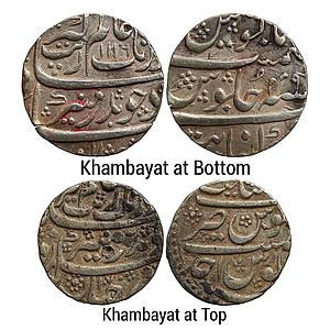 Mughal Aurangzeb Khambayat Mint Set of 2 Coins Silver Rupee