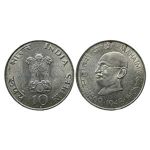 Republic India Gandhiji Birth Centennial 1969 AD Bombay Mint Silver 10 Rupee