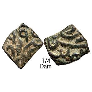 Mughal Akbar Sironj Mint Copper Square 1/4 Dam