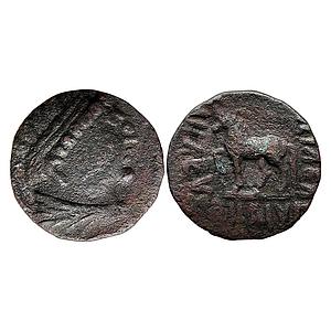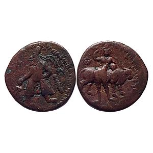 Ancient Kushans Wima Takto Soter Megas Imitating Heliokles I of Bactrian Kingdom Copper Tetradrachm