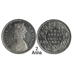 British India Victoria Empress 1881 AD Calcutta Mint Obv B Rev II C incuse Silver 2 Annas