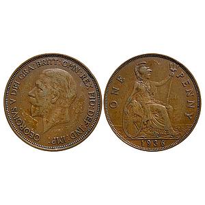 United Kingdom George V 1936 AD Bronze 1 Penny