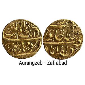 Mughal Aurangzeb Zafrabad Mint Mihr Munir Couplet Gold Mohur