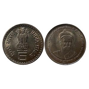Republic India Commemorative Issue 150th Birth Anniversary of Lokmanya Balgangadhar Tilakji Bombay Mint 5 Rupees Copper-Nickel