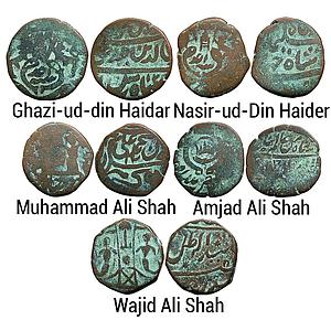 IPS Awadh State Set of 5 Coins Ghazi-ud-din Haidar Nasir-ud-Din Haider Muhammad Ali Shah Amjad Ali Shah Wajid Ali Shah Lakhnau Mint Copper Falus