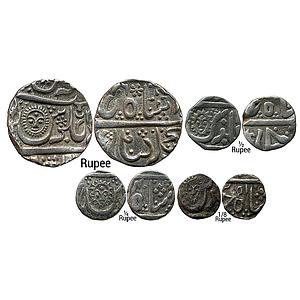 IPS Indore State INO Shah Alam II Malharnagar Mint Set of 4 coins Silver Rupee & 1/2 Rupee & 1/4 Rupee