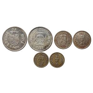 Indo Portuguese Set of 3 Coins Silver (.917) Rupia Copper-Nickel 4 Tangas & Copper-Nickel 2 Tangas