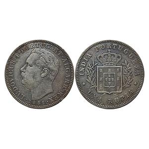 Indo Portuguese Goa Luiz I Ludwig 1882 AD Silver .917 Uma Rupia Rupee
