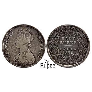 British India Victoria Empress 1879 AD Calcutta Mint Obv A Rev I C Incuse Silver 1/2 Rupee