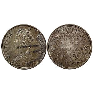 British India Victoria Queen Calcutta Mint 1862 AD Obv B Rev III Silver Rupee