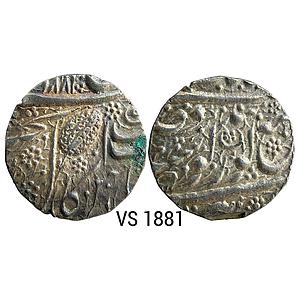 IK Sikh Empire Ranjit Singh VS 1881 Amritsar Mint Nanakshahi Couplet Silver Rupee