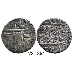 IK Sikh Empire Ranjit Singh VS 1864 Amritsar Mint Nanakshahi Couplet Silver Rupee
