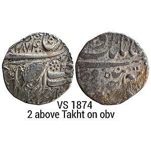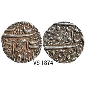 IK Sikh Empire Ranjit Singh VS 1874 Amritsar Mint Nanakshahi Couplet Silver Rupee