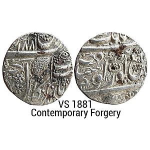 IK Sikh Empire Ranjit Singh VS 1881 Amritsar Mint Nanakshahi Couplet Contemporary Forgery Silver Rupee