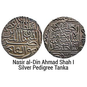 Gujarat Sultan Nasir al-Din Ahmad Shah I Silver Pedigree Tanka