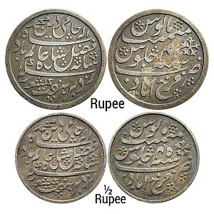 EIC Bengal Presidency INO Shah Alam II Farrukhabad Mint Set of 2 Coins Silver Rupee & 1/2 Rupee