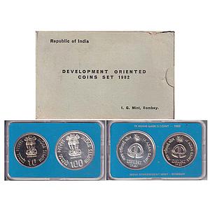 Republic India 1982 AD Uncirculated Set IX Asian Games Delhi Set of 2 Rupee 10 and 100