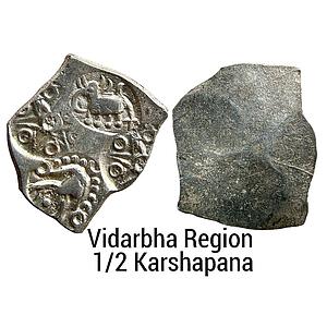 Ancient Punch Marked Coinage Northern Vidarbha Melghat Region Makhala Hoard type Silver 1/2 Karshapana