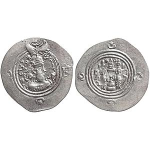 Sassanian Khusru II 590-628 AD mint GD (Isfahan) year tlyn (2) Silver Drachm