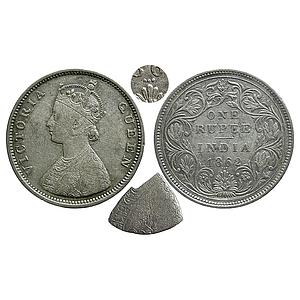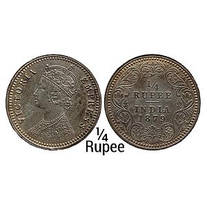 British India Victoria Empress 1879 AD Calcutta Mint C / II / C incuse Silver 1/4 Rupee