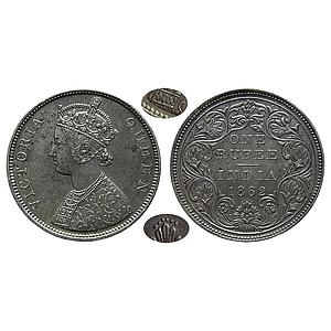 British India Victoria Queen 1862 AD Bombay Mint A / II / 0 / 4 / 1 dots Silver Rupee