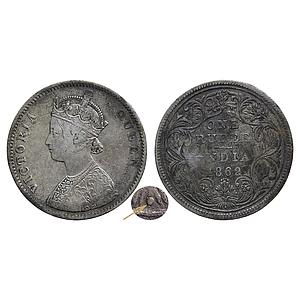 British India Victoria Queen 1862 AD Bombay Mint A / II / 1 / 4 top dot within top flower Silver Rupee