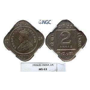 British India George V 1926 AD Bombay Mint Cupro-Nickel 2 Annas