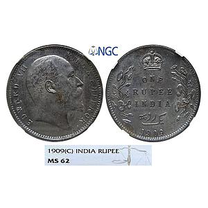 British India Edward VII 1909 AD Calcutta Mint Silver Rupee