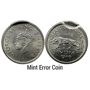 British India George VI 1946 AD Mint Error Coin Nickel 1/4 Rupee