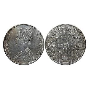British India Victoria Empress 1881 AD Bombay Mint A3 / IV / dot Silver Rupee