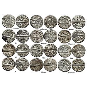 Mughal Jahangir Delhi Mint Full 12 Ilahi Months Set Silver Rupee