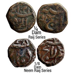 Mughal Jahangir Agra Mint Delhi Mint Set of 2 Coins Raij Series Copper 1/4 Dam & 1/8 Dam