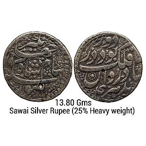 Mughal Jahangir Lahore Mint Ta Falak Couplet Silver Sawai Rupee (25% Heavy weight)