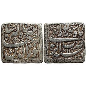 Mughal Jahangir Agra Mint ilahi type Month Ardibihisht Taurus Silver Square Rupee