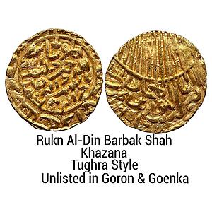 Bengal Sultan Rukn Al-Din Barbak Shah Khazana Mint Tughra Style Gold Tanka
