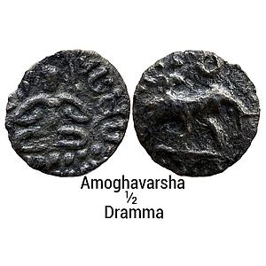 Hindu Medieval Rashtrakutas Amoghavarsha Silver 1/2 Dramma