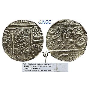 IK Sikh Empire Sher Singh VS 1885 Amritsar Mint Nanakshahi Couplet Silver Rupee
