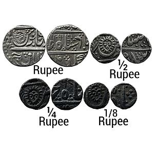 IPS Indore State INO Shah Alam II Malharnagar Mint Set of 4 coins Silver Rupee 1/2 Rupee 1/4 Rupee 1/8 Rupee