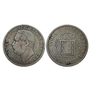 Indo Portuguese Goa Luiz I Ludwig 1882 AD Silver (.917) Uma Rupia Rupee