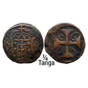 Indo Portugues Diu John V 1748 AD Copper Atia 1/4 Tanga