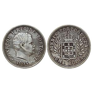 Indo Portuguese Goa Carlos I 1904 AD Silver Uma Rupia/Rupee